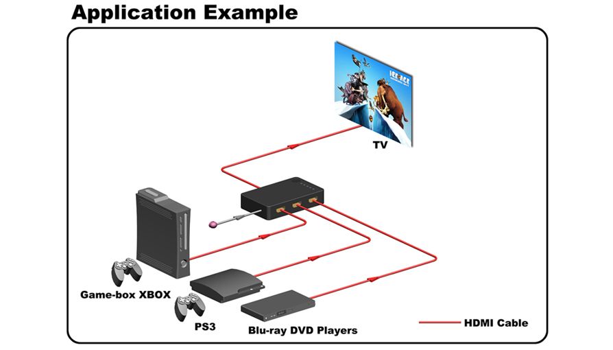 This is a high performance 3 HDMI input and 1 HDMI output switch. It supports HDCP repeater functions and fast switching between any of the HDMI input ports. The system supports all 3D TV formats in addition to all HDTV formats up to 4Kx2K. Furthermore, the remote control gives uses complete control over the selection of sources and makes the device incredibly user friendly.