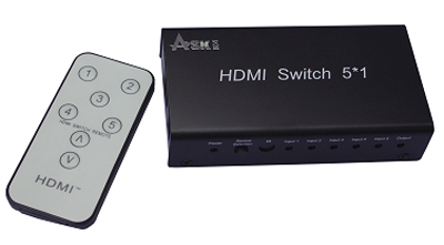 HDMI Switcher 5×1 Metal house, gift box , IR&Power (Support 3D)