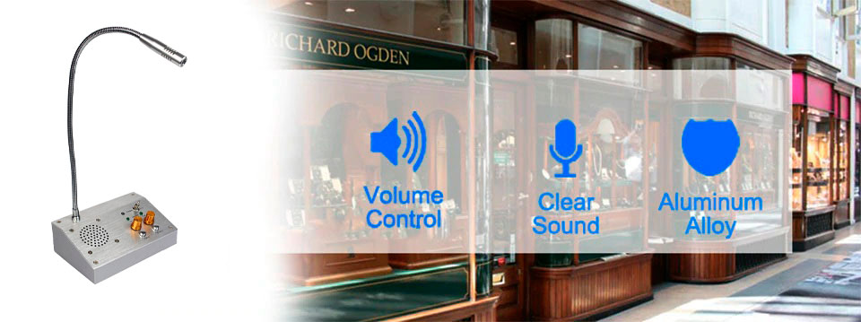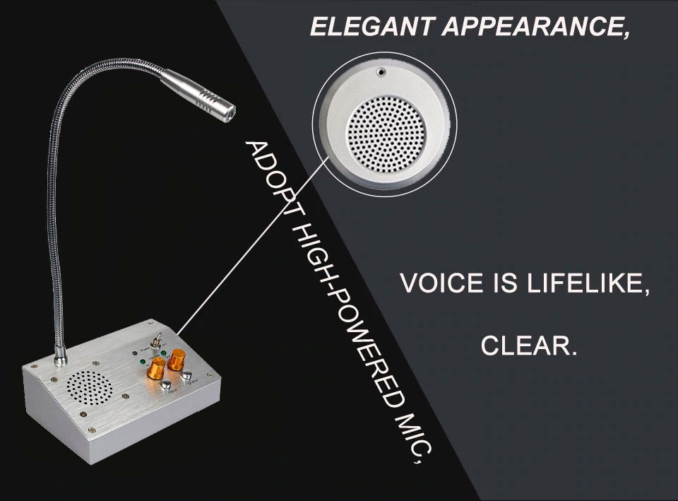 This system has top-quality speaker and high-sensitive microphone. Especially using a 4 core high-strength aluminum foil shielded wire, strong anti-interference ability, which makes the voice clear and natural. The two-way voice intercom communications technology, automatic identification of processing speech signals during a call does not require any action. Suitable for the Bank, Securities Company, Hospital, Station etc., where the burglar-proof glazing is installed.