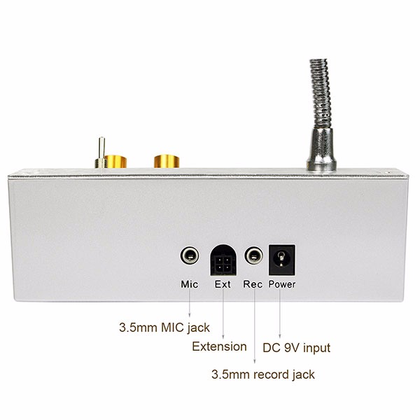 - Have recording jack can be output both inside and outside the two-way voice signals (such as the bank teller system for recording)