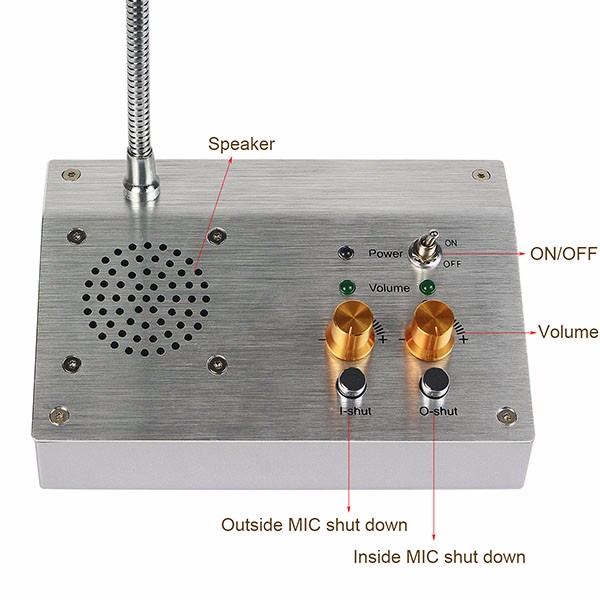 - Both inside and outside have speaker and microphone, The volume and microphone sensitivity can be separately adjusted