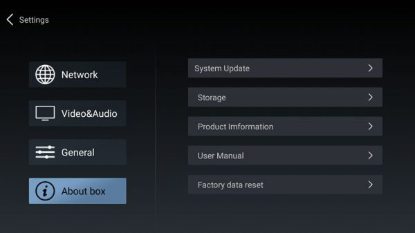 | Interface | AV,CVBS/L/R,DC Power Port,HDMI,LAN,RJ45,USB2.0,WiFi Antenna |